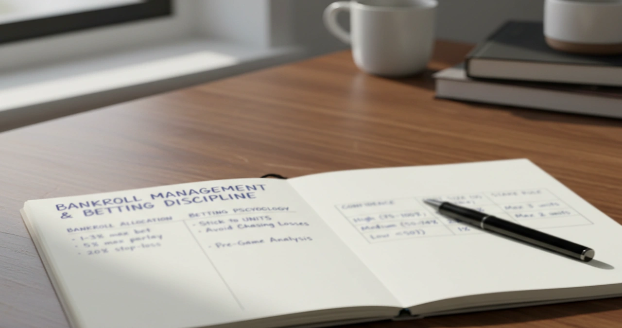 Quaderno aperto con annotazioni ordinate sulla gestione del budget scommesse